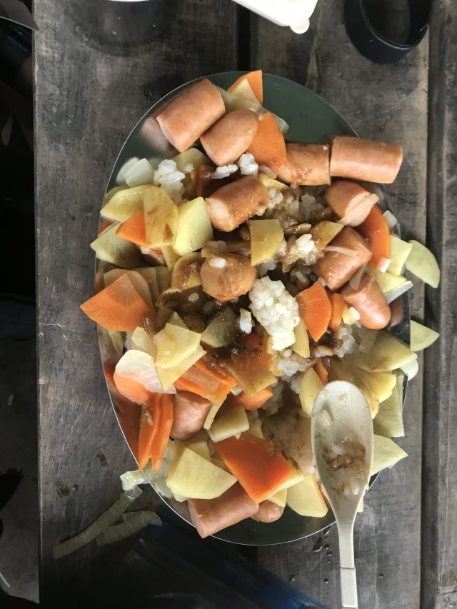 具だくさんなカレーや水が多くおかゆみたいになってしまったご飯もちょくちょく見ました。