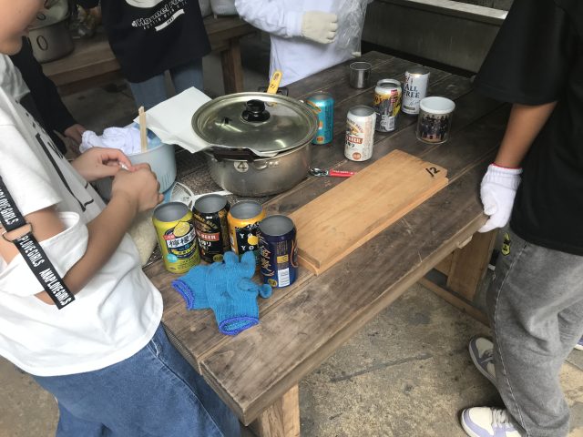 二日目からは野外炊事で空き缶ご飯とカレーを作りましたね。