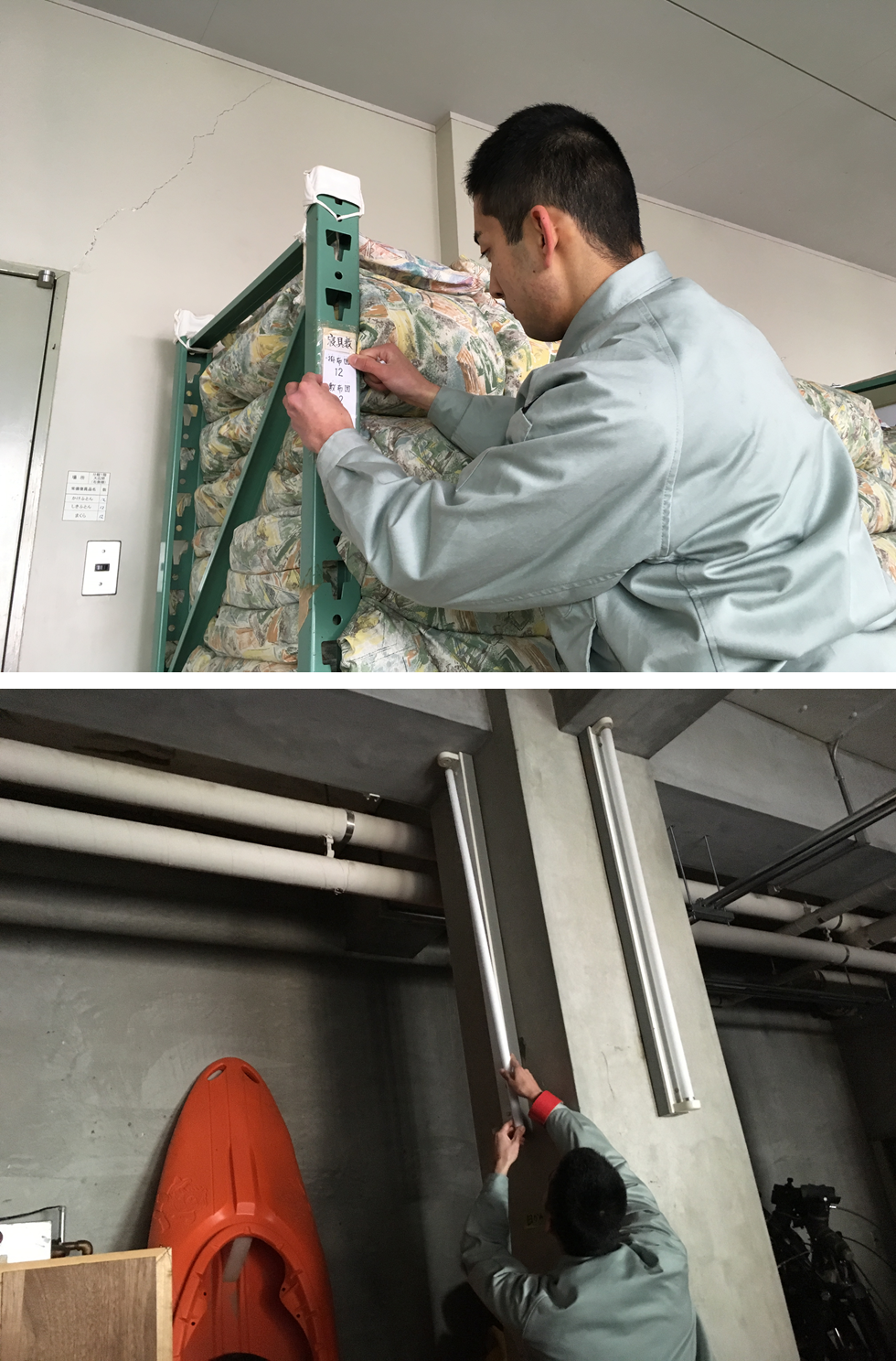 職場体験2日目の作業は、日常業務の点検とシーツの準備、倉庫の整理整頓を行いました。