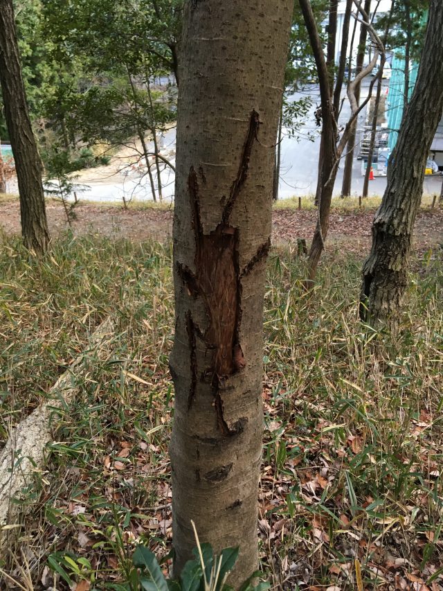 爪とぎか、皮を剥いで食べているのでしょうか?