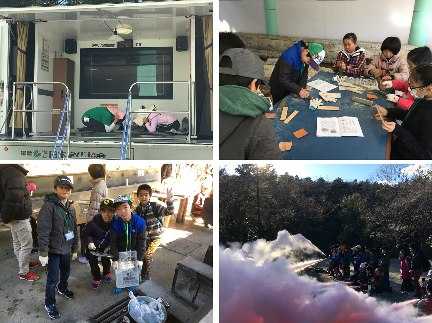 画像のような起震車で実際の地震のような体験したり、自分たちで周りにあるものでお皿を作ったり、消化体験をします!