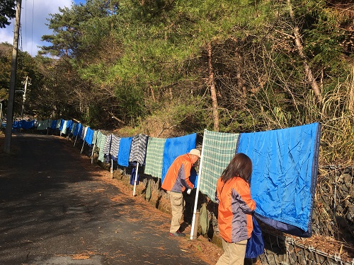 本日はお天気が合わず延期していた寝袋干しをおこないました。