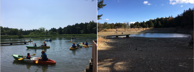 今年も何回もカヤック体験を行った大門池ですが、今は水を抜いた影響もあり、すっかり干上がってしまいました。