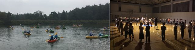 オリエンテーリングの後、写真ではわかりにくいですが小雨の中のカヤック体験では、みんな雨と水しぶきでびしょびしょになっていました(風邪をひかないでね)