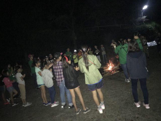 夕食の後は、昨日できなかった「キャンプファイヤー」を楽しみました。