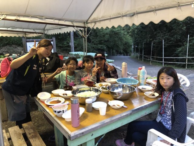 夜にはキャンプファイヤーがまっているので、なんとかキャンプファイヤーが終わるまで雨が降らないように祈りたいと思います。