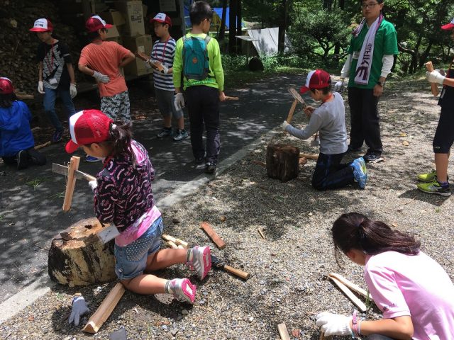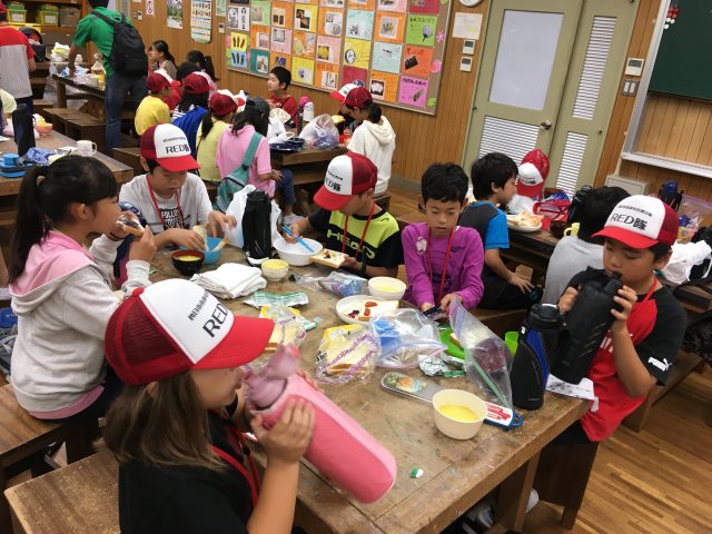 RED隊のみなさんは、元気に外へ飛び出し、今、野外炊事場で昼食づくりに奮闘中!