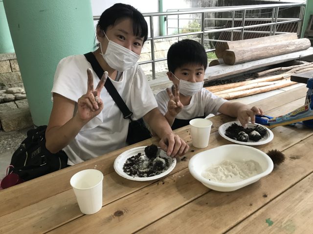 活動の中に森の中を歩くプログラムがあります。「たね団子Ⓡ」体験あり!