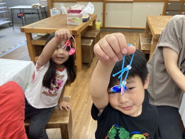 自然物を使った楽しい遊びや、簡単で可愛い「UVビーズと貝殻のストラップ」を作ります!
